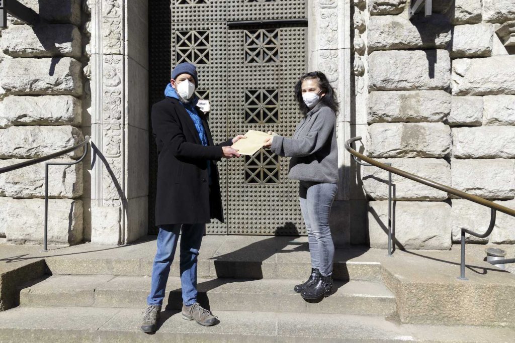 Stefan übergibt den Antrag an die Senatsverwaltung